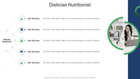 Introducing our well designed Dietician Nutritionist In Powerpoint And Google Slides Cpb This PowerPoint design presents information on topics like Dietician Nutritionist As it is predesigned it helps boost your confidence level. It also makes you a better presenter because of its high quality content and graphics. This PPT layout can be downloaded and used in different formats like PDF, PNG, and JPG. Not only this, it is available in both Standard Screen and Widescreen aspect ratios for your convenience. Therefore, click on the download button now to persuade and impress your audience. Our Dietician Nutritionist In Powerpoint And Google Slides Cpb are topically designed to provide an attractive backdrop to any subject. Use them to look like a presentation pro.
