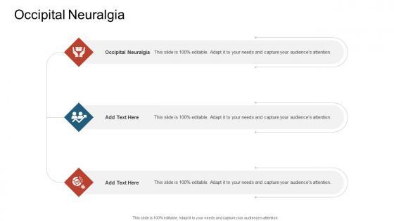 Presenting our innovatively designed set of slides titled Occipital Neuralgia In Powerpoint And Google Slides Cpb. This completely editable PowerPoint graphic exhibits Occipital Neuralgia that will help you convey the message impactfully. It can be accessed with Google Slides and is available in both standard screen and widescreen aspect ratios. Apart from this, you can download this well-structured PowerPoint template design in different formats like PDF, JPG, and PNG. So, click the download button now to gain full access to this PPT design. Our Occipital Neuralgia In Powerpoint And Google Slides Cpb are topically designed to provide an attractive backdrop to any subject. Use them to look like a presentation pro.