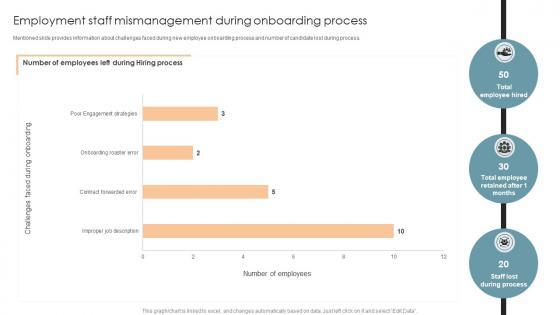 Mentioned slide provides information about challenges faced during new employee onboarding process and number of candidate lost during process.Find highly impressive Employment Staff Mismanagement During Onboarding Office Process Optimization To Increase Cost Efficiency on Slidegeeks to deliver a meaningful presentation. You can save an ample amount of time using these presentation templates. No need to worry to prepare everything from scratch because Slidegeeks experts have already done a huge research and work for you. You need to download Employment Staff Mismanagement During Onboarding Office Process Optimization To Increase Cost Efficiency for your upcoming presentation. All the presentation templates are 100 percent editable and you can change the color and personalize the content accordingly. Download now Mentioned slide provides information about challenges faced during new employee onboarding process and number of candidate lost during process.