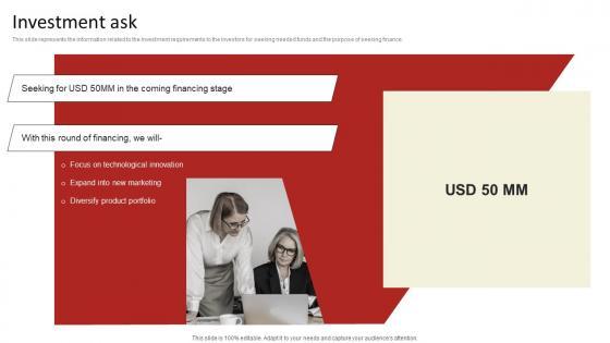 This slide represents the information related to the investment requirements to the investors for seeking needed funds and the purpose of seeking finance. Crafting an eye catching presentation has never been more straightforward. Let your presentation shine with this tasteful yet straightforward Investment Ask Online Delivery Investment Funding Elevator Pitch Deck Inspiration Pdf template. It offers a minimalistic and classy look that is great for making a statement. The colors have been employed intelligently to add a bit of playfulness while still remaining professional. Construct the ideal Investment Ask Online Delivery Investment Funding Elevator Pitch Deck Inspiration Pdf that effortlessly grabs the attention of your audience Begin now and be certain to wow your customers This slide represents the information related to the investment requirements to the investors for seeking needed funds and the purpose of seeking finance.