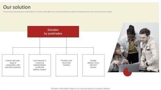 The following slide showcases solution offered by company which offers an on demand food delivery platform providing access to customer for nearby food outlets. This Our Solution Online Delivery Investment Funding Elevator Pitch Deck Summary Pdf is perfect for any presentation, be it in front of clients or colleagues. It is a versatile and stylish solution for organizing your meetings. The Our Solution Online Delivery Investment Funding Elevator Pitch Deck Summary Pdf features a modern design for your presentation meetings. The adjustable and customizable slides provide unlimited possibilities for acing up your presentation. Slidegeeks has done all the homework before launching the product for you. So, do not wait, grab the presentation templates today The following slide showcases solution offered by company which offers an on demand food delivery platform providing access to customer for nearby food outlets.