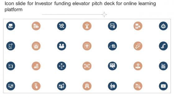 Introducing our well designed Icon Slide For Investor Funding Elevator Pitch Deck For Online Learning Platform set of slides. The slide displays editable icons to enhance your visual presentation. The icons can be edited easily. So customize according to your business to achieve a creative edge. Download and share it with your audience. Our Icon Slide For Investor Funding Elevator Pitch Deck For Online Learning Platform are topically designed to provide an attractive backdrop to any subject. Use them to look like a presentation pro.