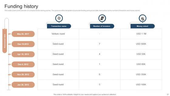This slide covers brief overview of company funds raising journey. The purpose of this template is to provide funding announced date, transaction name, number of investors and money raised. Do you have an important presentation coming up Are you looking for something that will make your presentation stand out from the rest Look no further than Funding History Investor Funding Elevator Pitch Deck For Online Learning Platform. With our professional designs, you can trust that your presentation will pop and make delivering it a smooth process. And with Slidegeeks, you can trust that your presentation will be unique and memorable. So why wait Grab Funding History Investor Funding Elevator Pitch Deck For Online Learning Platform today and make your presentation stand out from the rest This slide covers brief overview of company funds raising journey. The purpose of this template is to provide funding announced date, transaction name, number of investors and money raised.