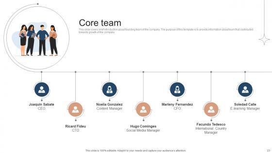 This slide covers brief introduction about founding team of the company. The purpose of this template is to provide information about team that contributed towards growth of the company. Do you have to make sure that everyone on your team knows about any specific topic I yes, then you should give Core Team Investor Funding Elevator Pitch Deck For Online Learning Platform a try. Our experts have put a lot of knowledge and effort into creating this impeccable Core Team Investor Funding Elevator Pitch Deck For Online Learning Platform. You can use this template for your upcoming presentations, as the slides are perfect to represent even the tiniest detail. You can download these templates from the Slidegeeks website and these are easy to edit. So grab these today This slide covers brief introduction about founding team of the company. The purpose of this template is to provide information about team that contributed towards growth of the company.