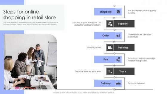 This slide represents online shopping process in retail stores. It includes steps such as shopping, support, order, packaging, payment, tracking and delivery. Do you have to make sure that everyone on your team knows about any specific topic I yes, then you should give Shopper Marketing Strategy To Enhance Steps For Online Shopping In Retail Store Professional Pdf a try. Our experts have put a lot of knowledge and effort into creating this impeccable Shopper Marketing Strategy To Enhance Steps For Online Shopping In Retail Store Professional Pdf. You can use this template for your upcoming presentations, as the slides are perfect to represent even the tiniest detail. You can download these templates from the Slidegeeks website and these are easy to edit. So grab these today. This slide represents online shopping process in retail stores. It includes steps such as shopping, support, order, packaging, payment, tracking and delivery.