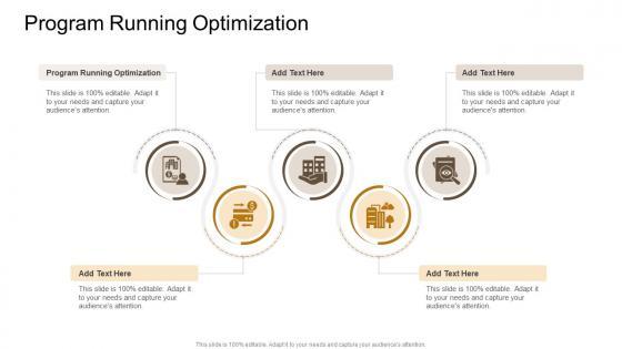 Presenting our innovatively designed set of slides titled Program Running Optimization In Powerpoint And Google Slides Cpb. This completely editable PowerPoint graphic exhibits Program Running Optimization that will help you convey the message impactfully. It can be accessed with Google Slides and is available in both standard screen and widescreen aspect ratios. Apart from this, you can download this well structured PowerPoint template design in different formats like PDF, JPG, and PNG. So, click the download button now to gain full access to this PPT design. Our Program Running Optimization In Powerpoint And Google Slides Cpb are topically designed to provide an attractive backdrop to any subject. Use them to look like a presentation pro.