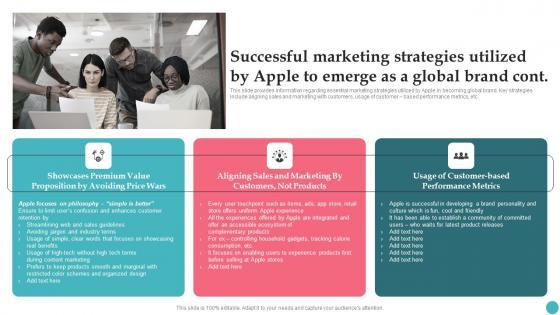 This slide provides information regarding essential marketing strategies utilized by Apple in becoming global brand. Key strategies include building revolutionary experience ecosystem, building customers community, etc. Coming up with a presentation necessitates that the majority of the effort goes into the content and the message you intend to convey. The visuals of a PowerPoint presentation can only be effective if it supplements and supports the story that is being told. Keeping this in mind our experts created Successful Marketing Strategies Utilized By Apple To Emerge Apples Proficiency In Optimizing Download Pdf to reduce the time that goes into designing the presentation. This way, you can concentrate on the message while our designers take care of providing you with the right template for the situation. This slide provides information regarding essential marketing strategies utilized by Apple in becoming global brand. Key strategies include building revolutionary experience ecosystem, building customers community, etc.