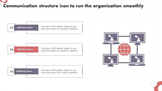 Pitch your topic with ease and precision using this Communication Structure Icon To Run The Organization Smoothly Introduction Pdf This layout presents information on Communication Structure, Icon To Run The Organization, Smoothly It is also available for immediate download and adjustment. So, changes can be made in the color, design, graphics or any other component to create a unique layout. Our Communication Structure Icon To Run The Organization Smoothly Introduction Pdf are topically designed to provide an attractive backdrop to any subject. Use them to look like a presentation pro.