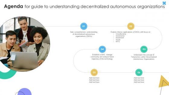 Find a pre-designed and impeccable Agenda For Guide To Understanding Decentralized Autonomous Organizations BCT SS V. The templates can ace your presentation without additional effort. You can download these easy-to-edit presentation templates to make your presentation stand out from others. So, what are you waiting for Download the template from Slidegeeks today and give a unique touch to your presentation. Our Agenda For Guide To Understanding Decentralized Autonomous Organizations BCT SS V are topically designed to provide an attractive backdrop to any subject. Use them to look like a presentation pro.