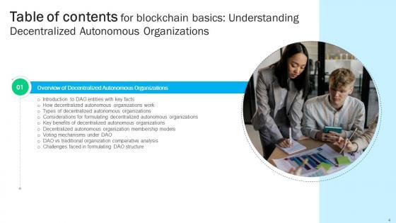 Make sure to capture your audiences attention in your business displays with our gratis customizable Table Of Contents Guide To Understanding Decentralized Autonomous Organizations BCT SS V. These are great for business strategies, office conferences, capital raising or task suggestions. If you desire to acquire more customers for your tech business and ensure they stay satisfied, create your own sales presentation with these plain slides. Our Table Of Contents Guide To Understanding Decentralized Autonomous Organizations BCT SS V are topically designed to provide an attractive backdrop to any subject. Use them to look like a presentation pro.