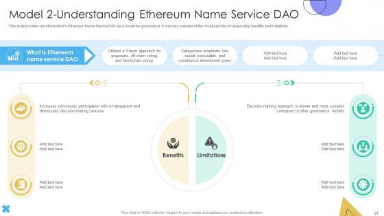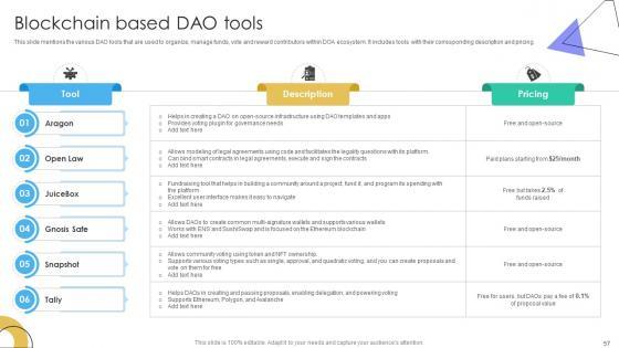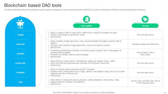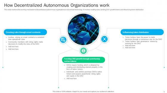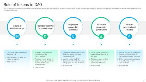 This Blockchain Basics Understanding Decentralized Autonomous Organizations Ppt Presentation BCT CD V is a primer on how to capitalize on business opportunities through planning, innovation, and market intelligence. The content-ready format of the complete deck will make your job as a decision-maker a lot easier. Use this ready-made PowerPoint Template to help you outline an extensive and legible plan to capture markets and grow your company on the right path, at an exponential pace. What is even more amazing is that this presentation is completely editable and 100 percent customizable. This seventy seven slide complete deck helps you impress a roomful of people with your expertise in business and even presentation. Craft such a professional and appealing presentation for that amazing recall value. Download now. Our Blockchain Basics Understanding Decentralized Autonomous Organizations Ppt Presentation BCT CD V are topically designed to provide an attractive backdrop to any subject. Use them to look like a presentation pro.