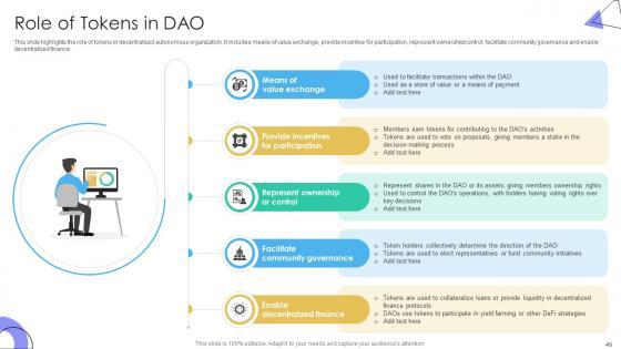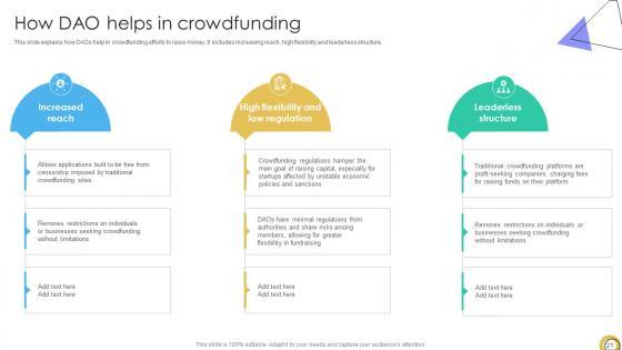 Use this Guide To Understanding Decentralized Autonomous Organizations BCT CD V to ensure the business world gets to know you as a presentation expert with tremendous recall value. With its focus on providing the worlds best designs to highlight business ideas that have the potential to change the world, this PPT Template is sure to win you clients. The complete deck in seventy two slides is a compendium of information, structured in a manner that provides the best framework for a presentation. Use this completely editable and customizable presentation to make an impact and improve your order book. Download now. Our Guide To Understanding Decentralized Autonomous Organizations BCT CD V are topically designed to provide an attractive backdrop to any subject. Use them to look like a presentation pro.