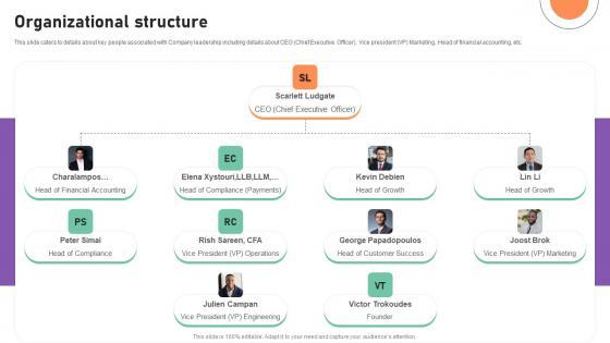 This slide covers organizational structure of the organization to understand authority-responsibility flow. Explore a selection of the finest Organizational Structure Ringcaptcha Capital Funding Pitch Deck Sample PDF here. With a plethora of professionally designed and pre-made slide templates, you can quickly and easily find the right one for your upcoming presentation. You can use our Organizational Structure Ringcaptcha Capital Funding Pitch Deck Sample PDF to effectively convey your message to a wider audience. Slidegeeks has done a lot of research before preparing these presentation templates. The content can be personalized and the slides are highly editable. Grab templates today from Slidegeeks.