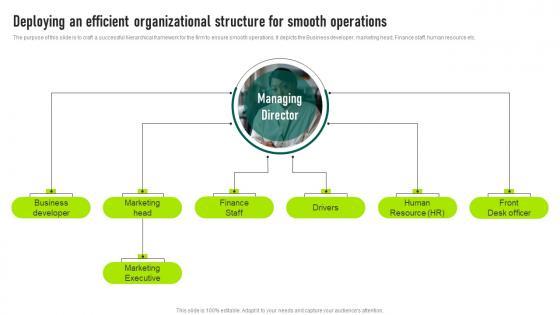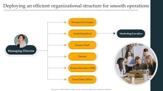 The purpose of this slide is to craft a successful hierarchical framework for the firm to ensure smooth operations. It depicts the Business developer, marketing head, Finance staff, human resource etc.Do you have to make sure that everyone on your team knows about any specific topic I yes, then you should give Deploying An Efficient Organizational Trucking Services Business Plan Demonstration Pdf a try. Our experts have put a lot of knowledge and effort into creating this impeccable Deploying An Efficient Organizational Trucking Services Business Plan Demonstration Pdf You can use this template for your upcoming presentations, as the slides are perfect to represent even the tiniest detail. You can download these templates from the Slidegeeks website and these are easy to edit. So grab these today. The purpose of this slide is to craft a successful hierarchical framework for the firm to ensure smooth operations. It depicts the Business developer, marketing head, Finance staff, human resource etc.