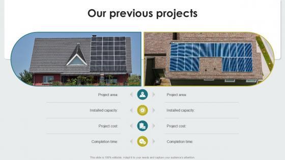 Deliver and pitch your topic in the best possible manner with this solar panel maintenance our previous projects ppt slides graphic images pdf. Use them to share invaluable insights on our previous projects and impress your audience. This template can be altered and modified as per your expectations. So, grab it now.