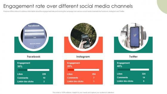Purpose of this slide is to address information about the engagement rate post running the campaign over various social media channels like Facebook, Instagram and Twitter.There are so many reasons you need a Engagement Rate Over Different Social Media Channels Comprehensive Personal Brand Building Guide For Social Media Graphics PDF. The first reason is you can not spend time making everything from scratch, Thus, Slidegeeks has made presentation templates for you too. You can easily download these templates from our website easily.