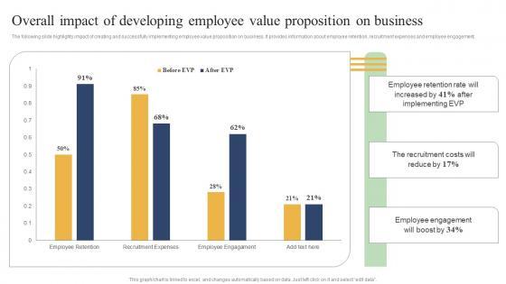 The following slide highlights impact of creating and successfully implementing employee value proposition on business. It provides information about employee retention, recruitment expenses and employee engagement. Formulating a presentation can take up a lot of effort and time, so the content and message should always be the primary focus. The visuals of the PowerPoint can enhance the presenters message, so our Overall Impact Of Developing Employee Value Proposition On Business Themes PDF was created to help save time. Instead of worrying about the design, the presenter can concentrate on the message while our designers work on creating the ideal templates for whatever situation is needed. Slidegeeks has experts for everything from amazing designs to valuable content, we have put everything into Overall Impact Of Developing Employee Value Proposition On Business Themes PDF