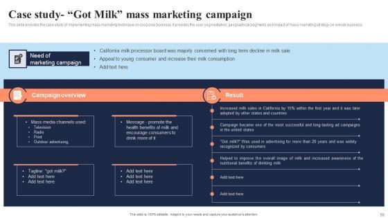 With well-researched insights and carefully-constructed design, this In Depth Overview Of Mass Marketing Strategies For Business Growth Complete Deck With Slides is all that you need for your next business meeting with clients and win them over. Add your data to graphs, charts, and tables that are already ready to display it with stunning visuals and help your audience recall your work. With this PPT Complete Deck, you will be able to display your knowledge of the subject as well as your skills as a communicator. Share your ideas and make an impact on the audience with this PowerPoint Layout and ensure that you are known as a presentation professional. Download this PPT Template Bundle to create the most interesting presentation anyone has ever seen. Our In Depth Overview Of Mass Marketing Strategies For Business Growth Complete Deck With Slides are topically designed to provide an attractive backdrop to any subject. Use them to look like a presentation pro.