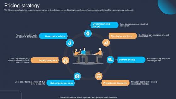 This slide showcases the plan how company will determine prices for its products and services. It include pricing strategies such as dynamic pricing, ride types and tiers, upfront pricing, promotions, etc. Whether you have daily or monthly meetings, a brilliant presentation is necessary. Pricing Strategy Platform As A Service Paas Business Model BMC SS V can be your best option for delivering a presentation. Represent everything in detail using Pricing Strategy Platform As A Service Paas Business Model BMC SS V and make yourself stand out in meetings. The template is versatile and follows a structure that will cater to your requirements. All the templates prepared by Slidegeeks are easy to download and edit. Our research experts have taken care of the corporate themes as well. So, give it a try and see the results. This slide showcases the plan how company will determine prices for its products and services. It include pricing strategies such as dynamic pricing, ride types and tiers, upfront pricing, promotions, etc.