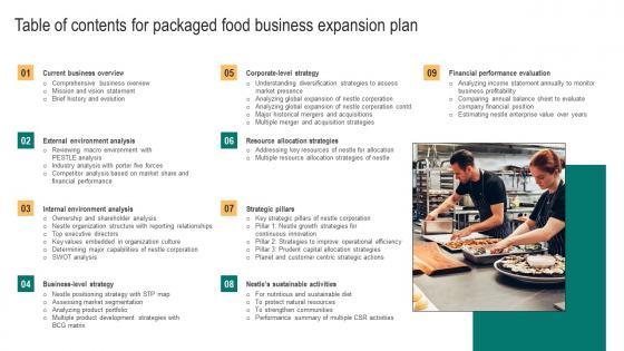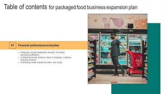Create an editable Table Of Contents For Packaged Food Business Expansion Plan Portrait Pdf that communicates your idea and engages your audience. Whether you are presenting a business or an educational presentation, pre-designed presentation templates help save time. Table Of Contents For Packaged Food Business Expansion Plan Portrait Pdf is highly customizable and very easy to edit, covering many different styles from creative to business presentations. Slidegeeks has creative team members who have crafted amazing templates. So, go and get them without any delay. Our Table Of Contents For Packaged Food Business Expansion Plan Portrait Pdf are topically designed to provide an attractive backdrop to any subject. Use them to look like a presentation pro.