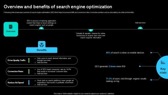 Following slide showcases overview of search engine optimization SEO that helps to increase traffic and conversion rates. It includes pointers such as description, key stats and benefits. Find a pre-designed and impeccable Overview And Benefits Of Search Engine Optimization Paid Marketing Approach Template Pdf The templates can ace your presentation without additional effort. You can download these easy-to-edit presentation templates to make your presentation stand out from others. So, what are you waiting for Download the template from Slidegeeks today and give a unique touch to your presentation. Following slide showcases overview of search engine optimization SEO that helps to increase traffic and conversion rates. It includes pointers such as description, key stats and benefits.