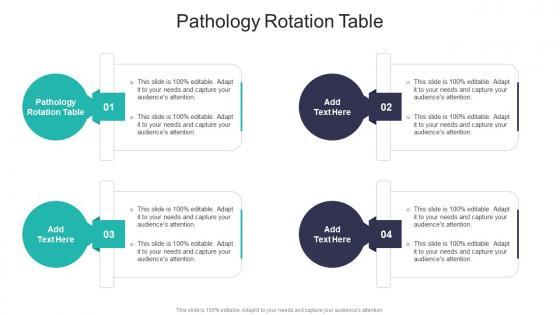 Presenting our innovatively designed set of slides titled Pathology Rotation Table In Powerpoint And Google Slides Cpb. This completely editable PowerPoint graphic exhibits Pathology Rotation Table that will help you convey the message impactfully. It can be accessed with Google Slides and is available in both standard screen and widescreen aspect ratios. Apart from this, you can download this well structured PowerPoint template design in different formats like PDF, JPG, and PNG. So, click the download button now to gain full access to this PPT design. Our Pathology Rotation Table In Powerpoint And Google Slides Cpb are topically designed to provide an attractive backdrop to any subject. Use them to look like a presentation pro.