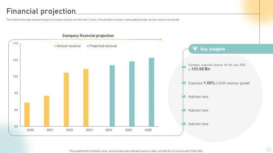 This slide showcases annual change in company revenue over the next 3 years, including the companys anticipated growth, and key reasons for growth. There are so many reasons you need a Financial Projection Pc Manufacturing Company Business Model BMC SS V. The first reason is you can not spend time making everything from scratch, Thus, Slidegeeks has made presentation templates for you too. You can easily download these templates from our website easily. This slide showcases annual change in company revenue over the next 3 years, including the companys anticipated growth, and key reasons for growth.