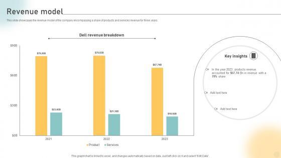 This slide showcases the revenue model of the company encompassing a share of products and services revenue for three years. Find highly impressive Revenue Model Pc Manufacturing Company Business Model BMC SS V on Slidegeeks to deliver a meaningful presentation. You can save an ample amount of time using these presentation templates. No need to worry to prepare everything from scratch because Slidegeeks experts have already done a huge research and work for you. You need to download Revenue Model Pc Manufacturing Company Business Model BMC SS V for your upcoming presentation. All the presentation templates are 100 percent editable and you can change the color and personalize the content accordingly. Download now This slide showcases the revenue model of the company encompassing a share of products and services revenue for three years.
