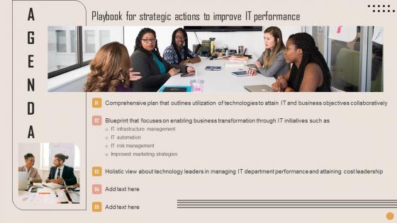 Want to ace your presentation in front of a live audience Our Agenda Playbook For Strategic Actions To Improve IT Performance Rules Pdf can help you do that by engaging all the users towards you. Slidegeeks experts have put their efforts and expertise into creating these impeccable powerpoint presentations so that you can communicate your ideas clearly. Moreover, all the templates are customizable, and easy to edit and downloadable. Use these for both personal and commercial use. Our Agenda Playbook For Strategic Actions To Improve IT Performance Rules Pdf are topically designed to provide an attractive backdrop to any subject. Use them to look like a presentation pro.