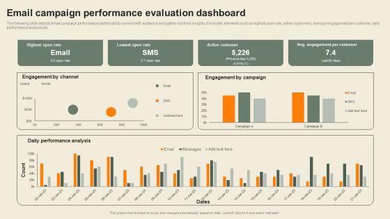 The following slide depicts email campaign performance dashboard to connect with audience and gather real time insights. It includes elements such as highest open rate, active customers, average engagement per customer, daily performance analysis etc. The best PPT templates are a great way to save time, energy, and resources. Slidegeeks have 100 percent editable powerpoint slides making them incredibly versatile. With these quality presentation templates, you can create a captivating and memorable presentation by combining visually appealing slides and effectively communicating your message. Download Email Campaign Performance Evaluation Usability Of CDP Software Tool Infographics Pdf from Slidegeeks and deliver a wonderful presentation. The following slide depicts email campaign performance dashboard to connect with audience and gather real time insights. It includes elements such as highest open rate, active customers, average engagement per customer, daily performance analysis etc.