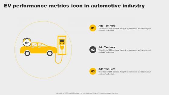 Showcasing this set of slides titled EV Performance Metrics Icon In Automotive Industry Infographics Pdf. The topics addressed in these templates are Ev Performance Metrics Icon, Automotive Industry. All the content presented in this PPT design is completely editable. Download it and make adjustments in color, background, font etc. as per your unique business setting. Our EV Performance Metrics Icon In Automotive Industry Infographics Pdf are topically designed to provide an attractive backdrop to any subject. Use them to look like a presentation pro.