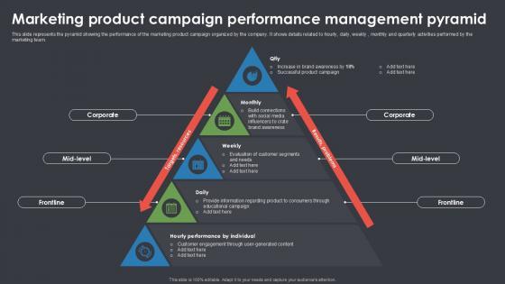 Are you searching for a Marketing Product Campaign Performance Management Pyramid Ppt Template SS that is uncluttered, straightforward, and original Its easy to edit, and you can change the colors to suit your personal or business branding. For a presentation that expresses how much effort you have put in, this template is ideal With all of its features, including tables, diagrams, statistics, and lists, its perfect for a business plan presentation. Make your ideas more appealing with these professional slides. Download Marketing Product Campaign Performance Management Pyramid Ppt Template SS from Slidegeeks today. Our Marketing Product Campaign Performance Management Pyramid Ppt Template SS are topically designed to provide an attractive backdrop to any subject. Use them to look like a presentation pro.