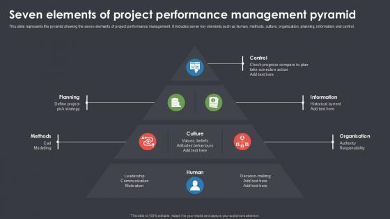 Slidegeeks is one of the best resources for PowerPoint templates. You can download easily and regulate Seven Elements Of Project Performance Management Pyramid Ppt Powerpoint SS for your personal presentations from our wonderful collection. A few clicks is all it takes to discover and get the most relevant and appropriate templates. Use our Templates to add a unique zing and appeal to your presentation and meetings. All the slides are easy to edit and you can use them even for advertisement purposes. Our Seven Elements Of Project Performance Management Pyramid Ppt Powerpoint SS are topically designed to provide an attractive backdrop to any subject. Use them to look like a presentation pro.