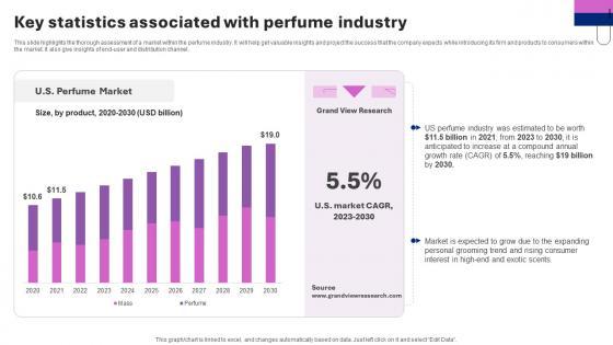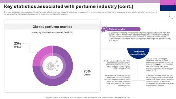 This slide highlights the thorough assessment of a market within the perfume industry. It will help get valuable insights and project the success that the company expects while introducing its firm and products to consumers within the market. It also give insights of end-user and distribution channel. Formulating a presentation can take up a lot of effort and time, so the content and message should always be the primary focus. The visuals of the PowerPoint can enhance the presenters message, so our Perfume Manufacturing Business Plan Key Statistics Associated With Perfume Industry BP SS V was created to help save time. Instead of worrying about the design, the presenter can concentrate on the message while our designers work on creating the ideal templates for whatever situation is needed. Slidegeeks has experts for everything from amazing designs to valuable content, we have put everything into Perfume Manufacturing Business Plan Key Statistics Associated With Perfume Industry BP SS V. This slide highlights the thorough assessment of a market within the perfume industry. It will help get valuable insights and project the success that the company expects while introducing its firm and products to consumers within the market. It also give insights of end-user and distribution channel.