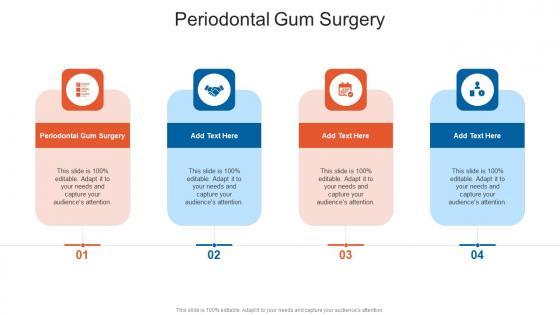 Presenting our innovatively designed set of slides titled Periodontal Gum Surgery In Powerpoint And Google Slides Cpb. This completely editable PowerPoint graphic exhibits Periodontal Gum Surgery that will help you convey the message impactfully. It can be accessed with Google Slides and is available in both standard screen and widescreen aspect ratios. Apart from this, you can download this well structured PowerPoint template design in different formats like PDF, JPG, and PNG. So, click the download button now to gain full access to this PPT design. Our Periodontal Gum Surgery In Powerpoint And Google Slides Cpb are topically designed to provide an attractive backdrop to any subject. Use them to look like a presentation pro.
