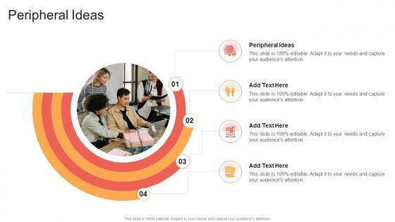 Presenting our innovatively designed set of slides titled Peripheral Ideas In Powerpoint And Google Slides Cpb This completely editable PowerPoint graphic exhibits Peripheral Ideas that will help you convey the message impactfully. It can be accessed with Google Slides and is available in both standard screen and widescreen aspect ratios. Apart from this, you can download this well structured PowerPoint template design in different formats like PDF, JPG, and PNG. So, click the download button now to gain full access to this PPT design. Our Peripheral Ideas In Powerpoint And Google Slides Cpb are topically designed to provide an attractive backdrop to any subject. Use them to look like a presentation pro.