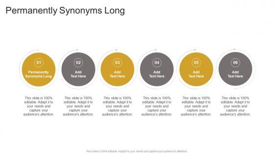 Presenting our innovatively-designed set of slides titled Permanently Synonyms Long In Powerpoint And Google Slides Cpb. This completely editable PowerPoint graphic exhibits Permanently Synonyms Long that will help you convey the message impactfully. It can be accessed with Google Slides and is available in both standard screen and widescreen aspect ratios. Apart from this, you can download this well-structured PowerPoint template design in different formats like PDF, JPG, and PNG. So, click the download button now to gain full access to this PPT design. Our Permanently Synonyms Long In Powerpoint And Google Slides Cpb are topically designed to provide an attractive backdrop to any subject. Use them to look like a presentation pro.