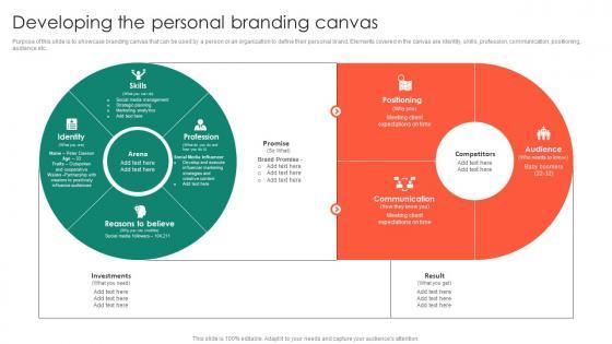 Purpose of this slide is to showcase branding canvas that can be used by a person or an organization to define their personal brand. Elements covered in the canvas are identity, skills, profession, communication, positioning, audience etc.If you are looking for a format to display your unique thoughts, then the professionally designed Developing The Personal Branding Canvas Entrepreneurs Roadmap To Effective Demonstration Pdf is the one for you. You can use it as a Google Slides template or a PowerPoint template. Incorporate impressive visuals, symbols, images, and other charts. Modify or reorganize the text boxes as you desire. Experiment with shade schemes and font pairings. Alter, share or cooperate with other people on your work. Download Developing The Personal Branding Canvas Entrepreneurs Roadmap To Effective Demonstration Pdf and find out how to give a successful presentation. Present a perfect display to your team and make your presentation unforgettable. Purpose of this slide is to showcase branding canvas that can be used by a person or an organization to define their personal brand. Elements covered in the canvas are identity, skills, profession, communication, positioning, audience etc.