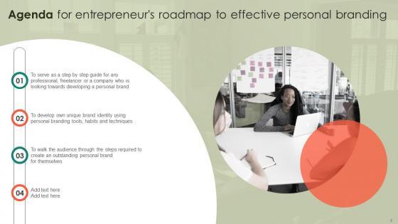 Create an editable Agenda For Entrepreneurs Roadmap To Effective Personal Branding Microsoft Pdf that communicates your idea and engages your audience. Whether you are presenting a business or an educational presentation, pre-designed presentation templates help save time. Agenda For Entrepreneurs Roadmap To Effective Personal Branding Microsoft Pdf is highly customizable and very easy to edit, covering many different styles from creative to business presentations. Slidegeeks has creative team members who have crafted amazing templates. So, go and get them without any delay. Our Agenda For Entrepreneurs Roadmap To Effective Personal Branding Microsoft Pdf are topically designed to provide an attractive backdrop to any subject. Use them to look like a presentation pro.