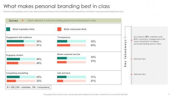 Mentioned slide highlights survey results related to personal branding. It shows information about the critical factors that helps in making personal branding best in class.Are you in need of a template that can accommodate all of your creative concepts This one is crafted professionally and can be altered to fit any style. Use it with Google Slides or PowerPoint. Include striking photographs, symbols, depictions, and other visuals. Fill, move around, or remove text boxes as desired. Test out color palettes and font mixtures. Edit and save your work, or work with colleagues. Download What Makes Personal Branding Best In Class Entrepreneurs Roadmap To Effective Slides Pdf and observe how to make your presentation outstanding. Give an impeccable presentation to your group and make your presentation unforgettable. Mentioned slide highlights survey results related to personal branding. It shows information about the critical factors that helps in making personal branding best in class.