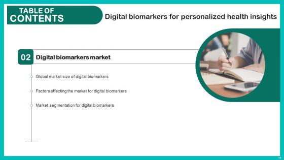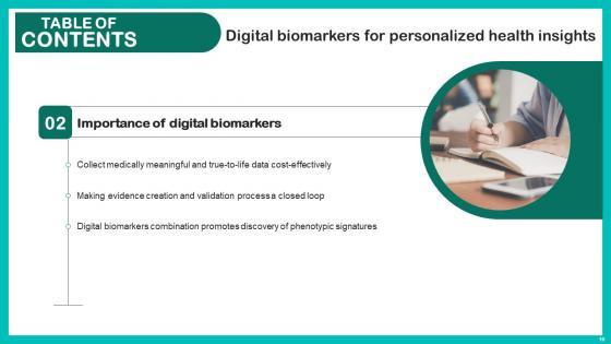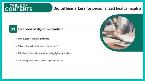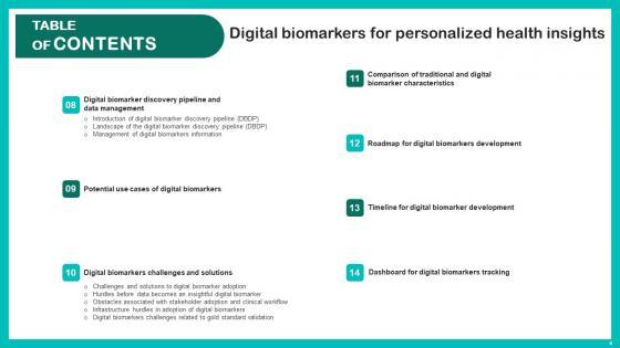 Do you have an important presentation coming up Are you looking for something that will make your presentation stand out from the rest Look no further than Digital Biomarkers For Personalized Health Insights Table Of Contents Elements Pdf. With our professional designs, you can trust that your presentation will pop and make delivering it a smooth process. And with Slidegeeks, you can trust that your presentation will be unique and memorable. So why wait Grab Digital Biomarkers For Personalized Health Insights Table Of Contents Elements Pdf today and make your presentation stand out from the rest Our Digital Biomarkers For Personalized Health Insights Table Of Contents Elements Pdf are topically designed to provide an attractive backdrop to any subject. Use them to look like a presentation pro.