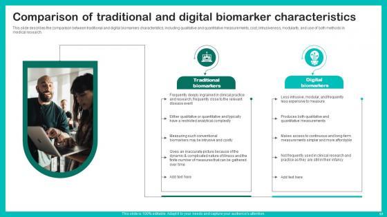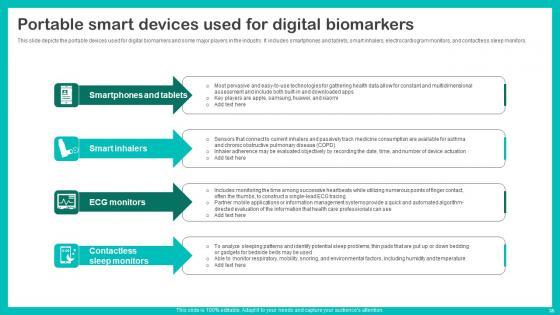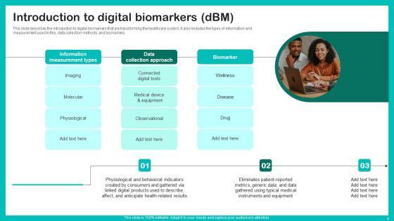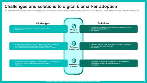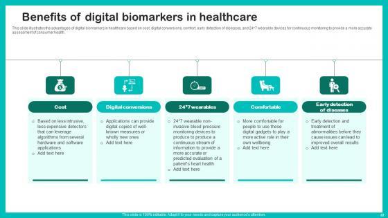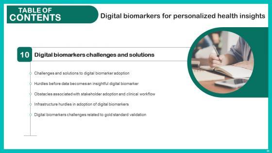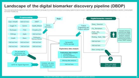 This unique Digital Biomarkers For Personalized Health Insights Ppt Powerpoint Presentation Complete Deck is a compendium of amazing information, actionable ideas on all business issues. The design of the presentation template ensures you have an ample opportunity to pick and choose areas you might want to emphasize. The sixty nine slides in the presentation template or all wonderfully colour coded to and ensure that you can get on with delivering your message with speed, and amazing effectiveness. Talk about management, leadership, change management, digital transformation etc with the unparalleled advantage of 100 percent customization of each and every elements of all our slides. Download now and see presentation take on a new dimension. Our Digital Biomarkers For Personalized Health Insights Ppt Powerpoint Presentation Complete Deck are topically designed to provide an attractive backdrop to any subject. Use them to look like a presentation pro.