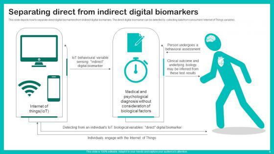 This slide depicts how to separate direct digital biomarkers from indirect digital biomarkers. The direct digital biomarker can be detected by collecting data from consumers Internet of Things variables. Take your projects to the next level with our ultimate collection of Separating Direct From Indirect Digital Biomarkers For Personalized Health Insights Download Pdf. Slidegeeks has designed a range of layouts that are perfect for representing task or activity duration, keeping track of all your deadlines at a glance. Tailor these designs to your exact needs and give them a truly corporate look with your own brand colors they will make your projects stand out from the rest This slide depicts how to separate direct digital biomarkers from indirect digital biomarkers. The direct digital biomarker can be detected by collecting data from consumers Internet of Things variables.