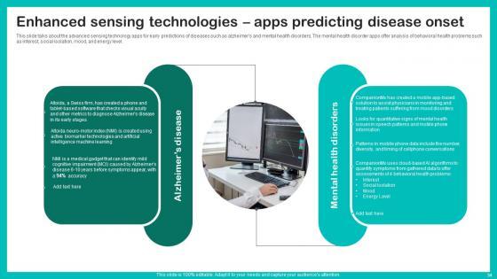 This slide talks about the advanced sensing technology apps for early predictions of diseases such as alzheimers and mental health disorders. The mental health disorder apps offer analysis of behavioral health problems such as interest, social isolation, mood, and energy level. Whether you have daily or monthly meetings, a brilliant presentation is necessary. Enhanced Sensing Technologies Digital Biomarkers For Personalized Health Insights Graphics Pdf can be your best option for delivering a presentation. Represent everything in detail using Enhanced Sensing Technologies Digital Biomarkers For Personalized Health Insights Graphics Pdf and make yourself stand out in meetings. The template is versatile and follows a structure that will cater to your requirements. All the templates prepared by Slidegeeks are easy to download and edit. Our research experts have taken care of the corporate themes as well. So, give it a try and see the results. This slide talks about the advanced sensing technology apps for early predictions of diseases such as alzheimers and mental health disorders. The mental health disorder apps offer analysis of behavioral health problems such as interest, social isolation, mood, and energy level.