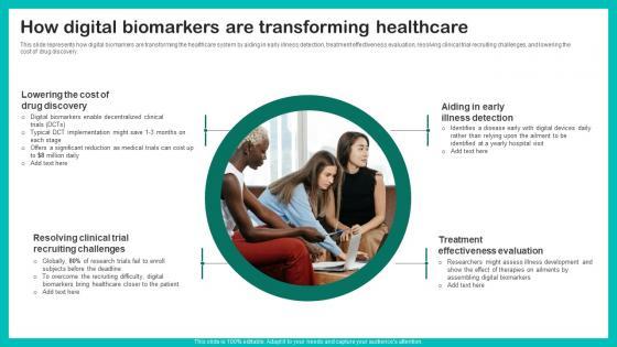 This slide represents how digital biomarkers are transforming the healthcare system by aiding in early illness detection, treatment effectiveness evaluation, resolving clinical trial recruiting challenges, and lowering the cost of drug discovery. If you are looking for a format to display your unique thoughts, then the professionally designed How Digital Biomarkers Digital Biomarkers For Personalized Health Insights Pictures Pdf is the one for you. You can use it as a Google Slides template or a PowerPoint template. Incorporate impressive visuals, symbols, images, and other charts. Modify or reorganize the text boxes as you desire. Experiment with shade schemes and font pairings. Alter, share or cooperate with other people on your work. Download How Digital Biomarkers Digital Biomarkers For Personalized Health Insights Pictures Pdf and find out how to give a successful presentation. Present a perfect display to your team and make your presentation unforgettable. This slide represents how digital biomarkers are transforming the healthcare system by aiding in early illness detection, treatment effectiveness evaluation, resolving clinical trial recruiting challenges, and lowering the cost of drug discovery.