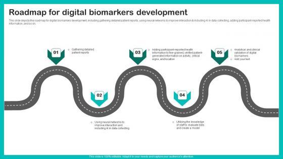 This slide depicts the roadmap for digital biomarkers development, including gathering detailed patient reports, using neural networks to improve interaction and including AI in data collecting, adding participant reported health information, and so on. Here you can discover an assortment of the finest PowerPoint and Google Slides templates. With these templates, you can create presentations for a variety of purposes while simultaneously providing your audience with an eye catching visual experience. Download Roadmap For Digital Biomarkers Digital Biomarkers For Personalized Health Insights Rules Pdf to deliver an impeccable presentation. These templates will make your job of preparing presentations much quicker, yet still, maintain a high level of quality. Slidegeeks has experienced researchers who prepare these templates and write high quality content for you. Later on, you can personalize the content by editing the Roadmap For Digital Biomarkers Digital Biomarkers For Personalized Health Insights Rules Pdf. This slide depicts the roadmap for digital biomarkers development, including gathering detailed patient reports, using neural networks to improve interaction and including AI in data collecting, adding participant reported health information, and so on.