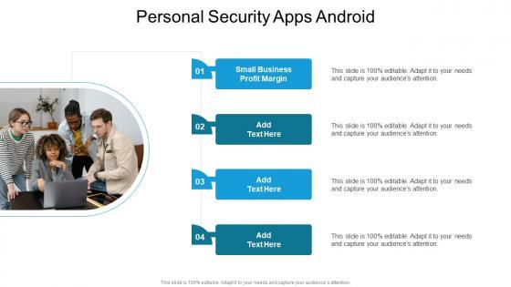 Introducing our well designed Personal Security Apps Android In Powerpoint And Google Slides Cpb. This PowerPoint design presents information on topics like Personal Security Apps Android. As it is predesigned it helps boost your confidence level. It also makes you a better presenter because of its high quality content and graphics. This PPT layout can be downloaded and used in different formats like PDF, PNG, and JPG. Not only this, it is available in both Standard Screen and Widescreen aspect ratios for your convenience. Therefore, click on the download button now to persuade and impress your audience. Our Personal Security Apps Android In Powerpoint And Google Slides Cpb are topically designed to provide an attractive backdrop to any subject. Use them to look like a presentation pro.