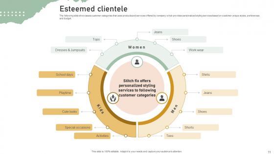 The following slide showcases customer categories that uses products and services offered by company which provides personalized styling services based on customer unique styles, preferences and budget. Get a simple yet stunning designed Esteemed Clientele Personal Styling Service Investor Funding Elevator Pitch Deck. It is the best one to establish the tone in your meetings. It is an excellent way to make your presentations highly effective. So, download this PPT today from Slidegeeks and see the positive impacts. Our easy-to-edit Esteemed Clientele Personal Styling Service Investor Funding Elevator Pitch Deck can be your go-to option for all upcoming conferences and meetings. So, what are you waiting for Grab this template today. The following slide showcases customer categories that uses products and services offered by company which provides personalized styling services based on customer unique styles, preferences and budget.