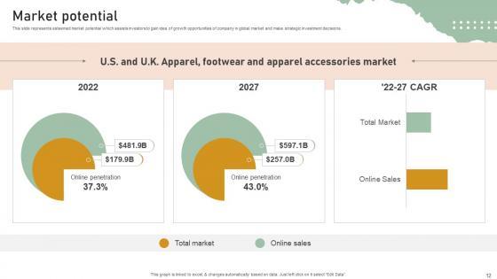 This slide represents esteemed market potential which assists investors to gain idea of growth opportunities of company in global market and make strategic investment decisions. Are you in need of a template that can accommodate all of your creative concepts This one is crafted professionally and can be altered to fit any style. Use it with Google Slides or PowerPoint. Include striking photographs, symbols, depictions, and other visuals. Fill, move around, or remove text boxes as desired. Test out color palettes and font mixtures. Edit and save your work, or work with colleagues. Download Market Potential Personal Styling Service Investor Funding Elevator Pitch Deck and observe how to make your presentation outstanding. Give an impeccable presentation to your group and make your presentation unforgettable. This slide represents esteemed market potential which assists investors to gain idea of growth opportunities of company in global market and make strategic investment decisions.