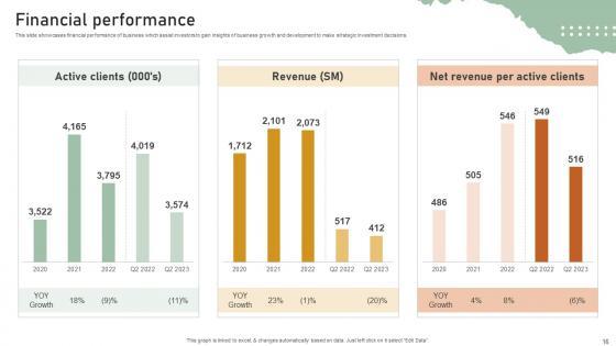 This slide showcases financial performance of business which assist investors to gain insights of business growth and development to make strategic investment decisions. Present like a pro with Financial Performance Personal Styling Service Investor Funding Elevator Pitch Deck. Create beautiful presentations together with your team, using our easy-to-use presentation slides. Share your ideas in real-time and make changes on the fly by downloading our templates. So whether you are in the office, on the go, or in a remote location, you can stay in sync with your team and present your ideas with confidence. With Slidegeeks presentation got a whole lot easier. Grab these presentations today. This slide showcases financial performance of business which assist investors to gain insights of business growth and development to make strategic investment decisions.